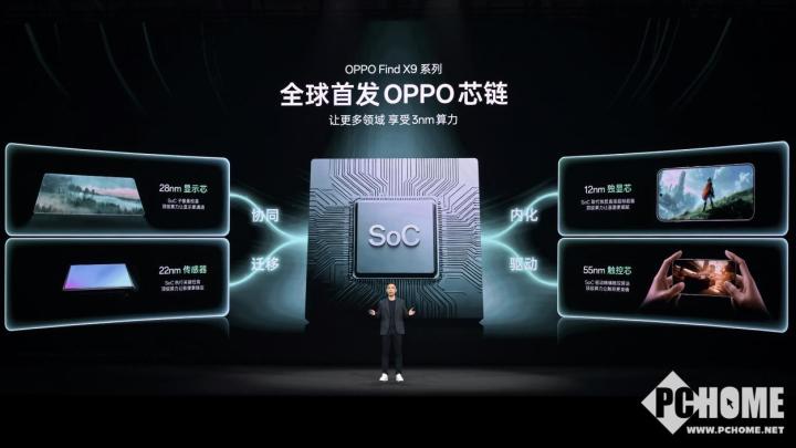 OPPO 以前瞻性技术视野,重磅推出全球首创的 “OPPO 芯链” 技术,彻底改写芯片协同的底层规则,构建起全场景算力自由流转的“数字高速公路”,打破芯片与芯片之间的壁垒,实现算力在芯片与器件之间高速自由流转。不同于传统芯片架构的单点优化, OPPO 芯链通过革命性的跨域协同算法,实现从底层架构到上层应用的全链路重构,让 3nm 制程的超强算力与器件之间实现跨领域、跨模块的深度协同,重新定义智能设备算力分配逻辑,为全场景应用体验带来革命性提升。