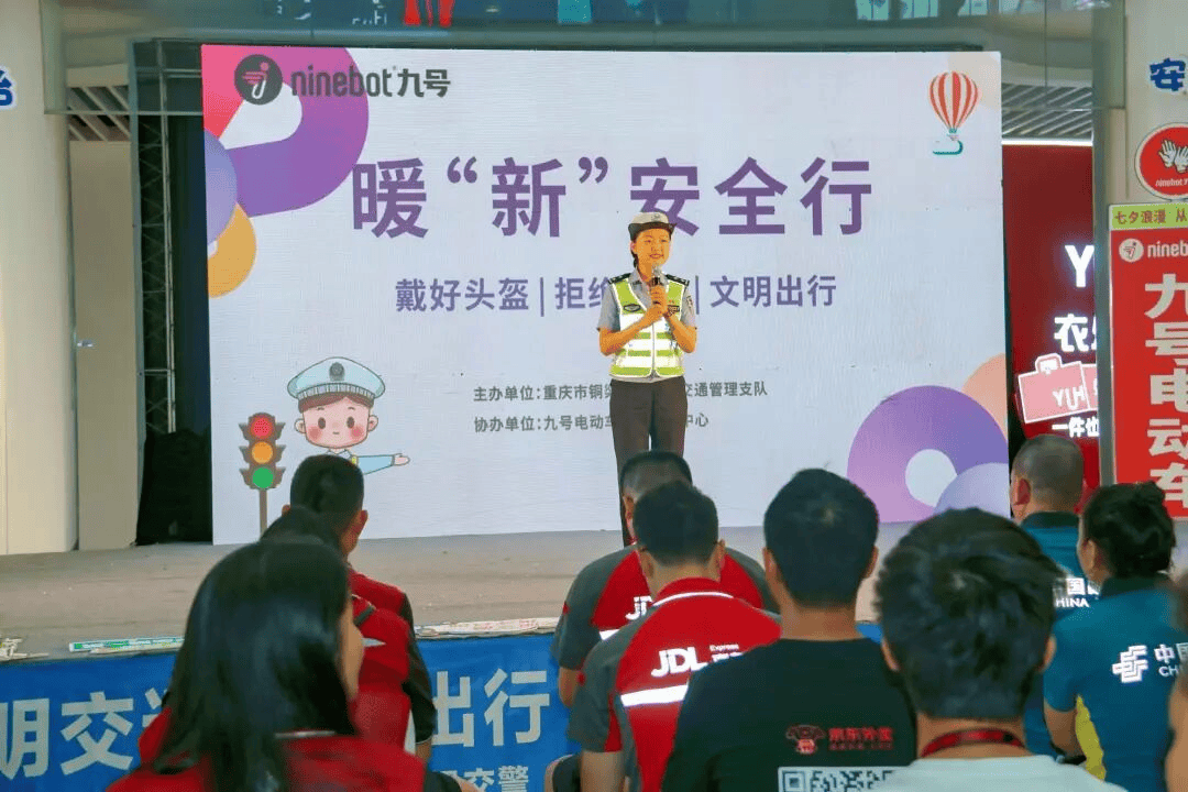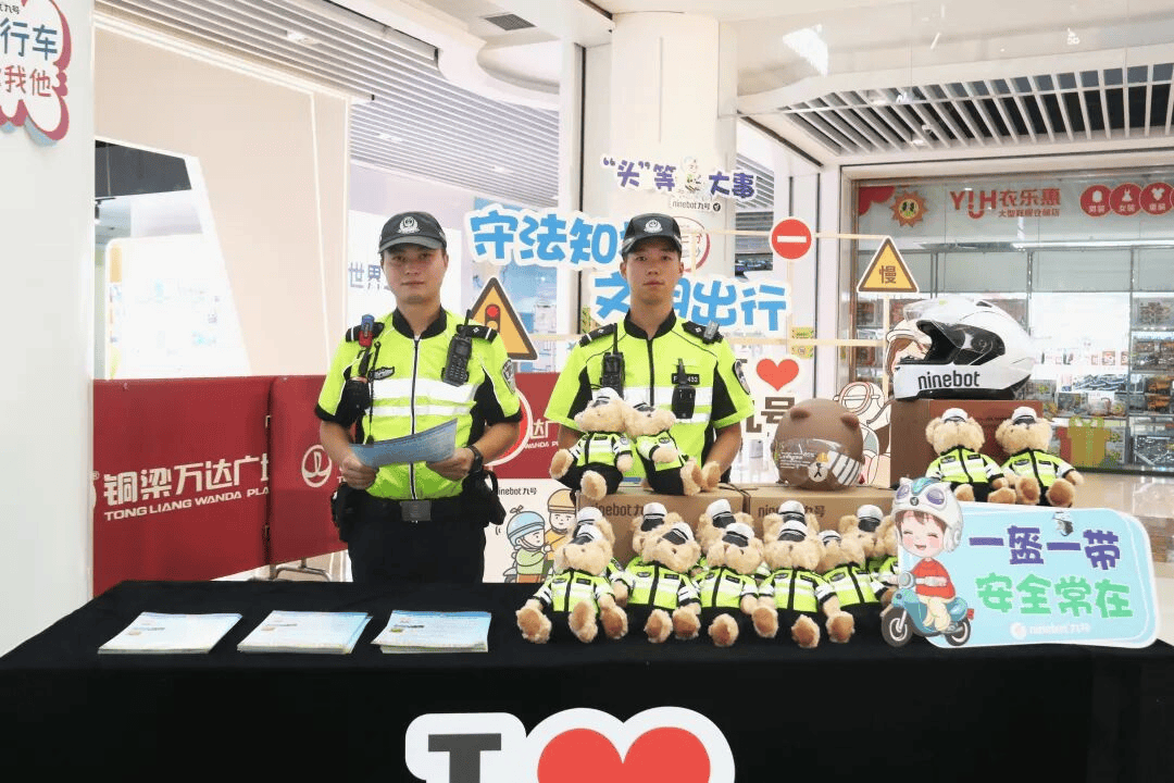 近日,重庆市铜梁区公安局交通管理支队携手电动车商家,在铜梁万达广场为快递员、外卖骑手、滴滴代驾及网约车司机等新就业群体,开展“暖新安全行,戴好头盔,拒绝改装,文明出行”主题宣传活动。